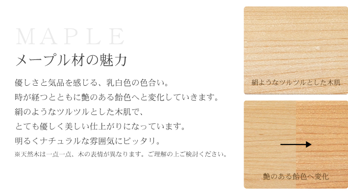 乳白色のメープル材がナチュラルでやさしい印象をあたえてくれます。